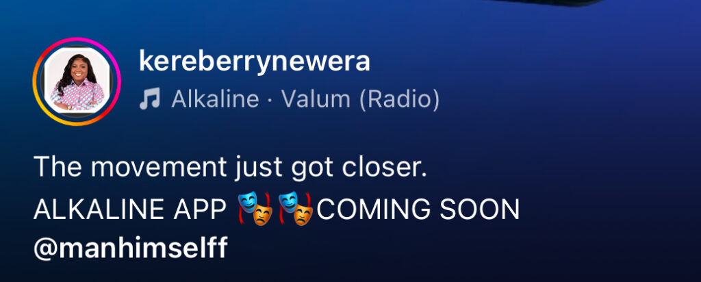 Alkaline’s sister, Kereena Beckford, recently shared a teaser of the upcoming app along with the caption, “The movement just got closer. Alkaline App coming soon.”