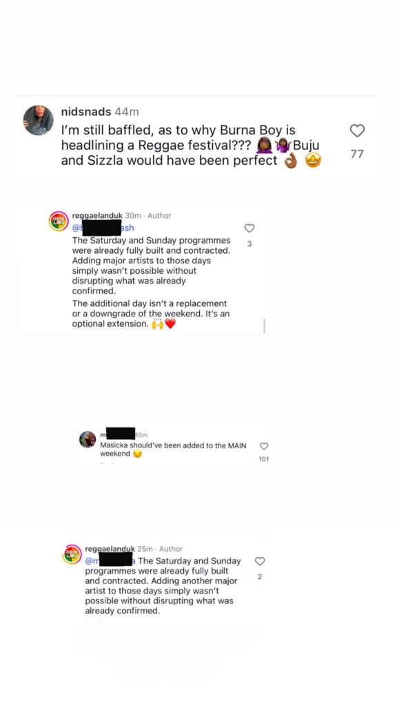 While many welcomed the expansion, some critics questioned why an Afrobeats star is headlining a reggae-focused festival and why Masicka is not part of the main weekend nights.