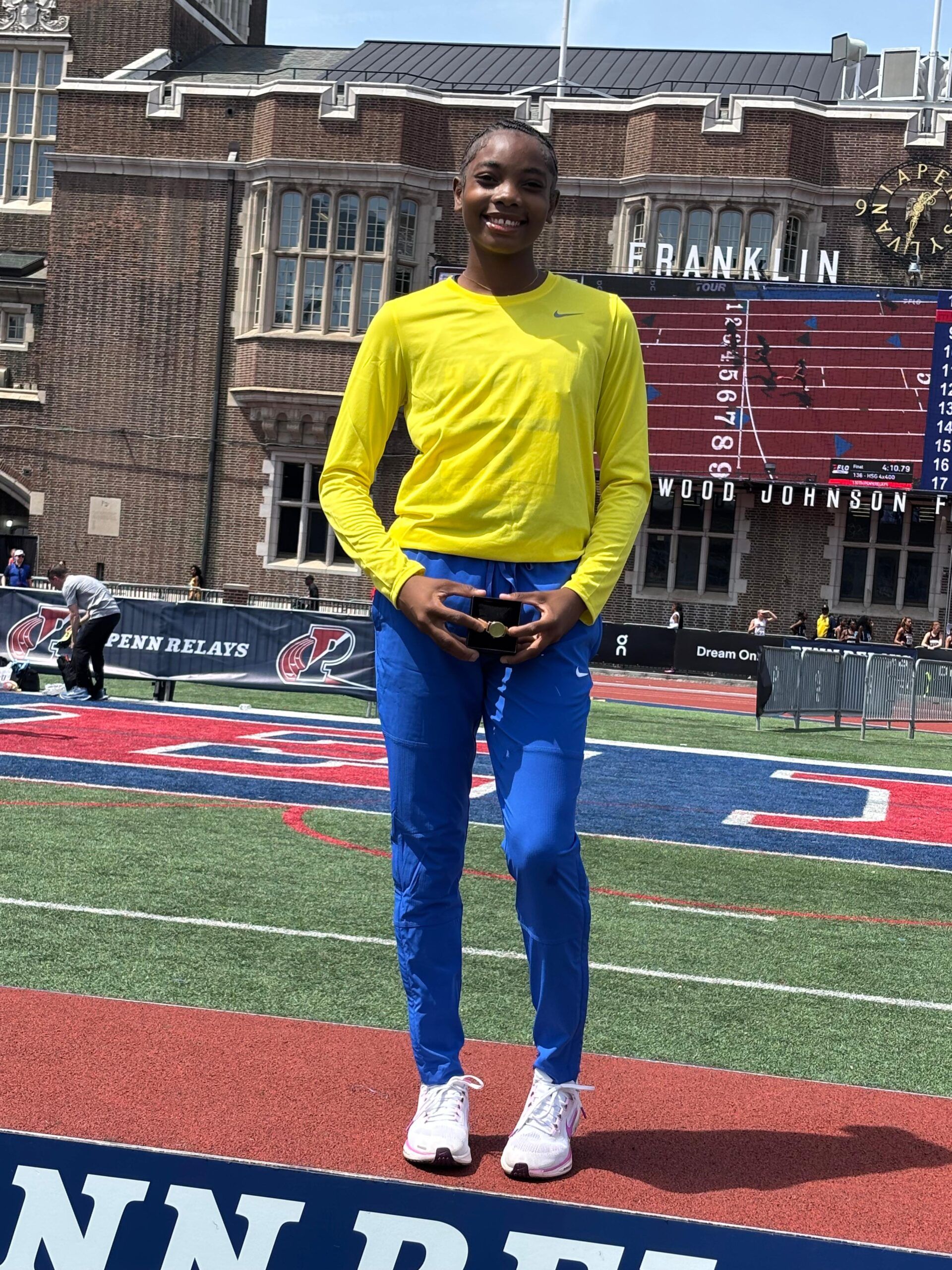 ISSA Class One Girls triple jump champion Zavien Bernard leapt her way to victory on her last attempt as she took the Penn Relays title on Thursday.