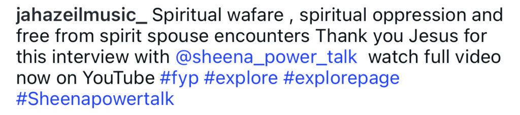 He captioned the post, “Spiritual warfare, spiritual oppression and free from spirit spouse encounters. Thank you Jesus for this interview.”
