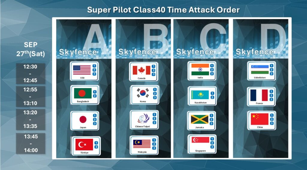 In the Class 40 International bracket, Jamaica will open their campaign against China in Group A1, which also includes Chinese Taipei and Spain. The team is also set to contest a Super Pilot Class 20 Time Attack group featuring Australia, Canada, and Slovakia.