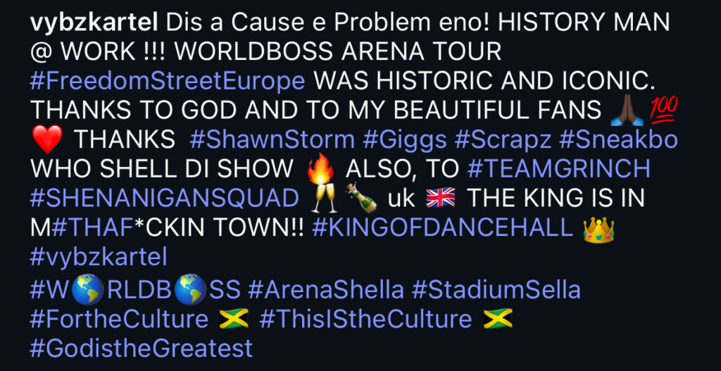 A day earlier, he also shared highlights from his sold out show in Birmingham, which drew an explosive audience. That post was captioned, “A dis a cause e problem eno! History man @ work! WorldBoss Arena Tour #Freedom StreetEurope was historic and iconic. Thanks to God and to my beautiful fans.”