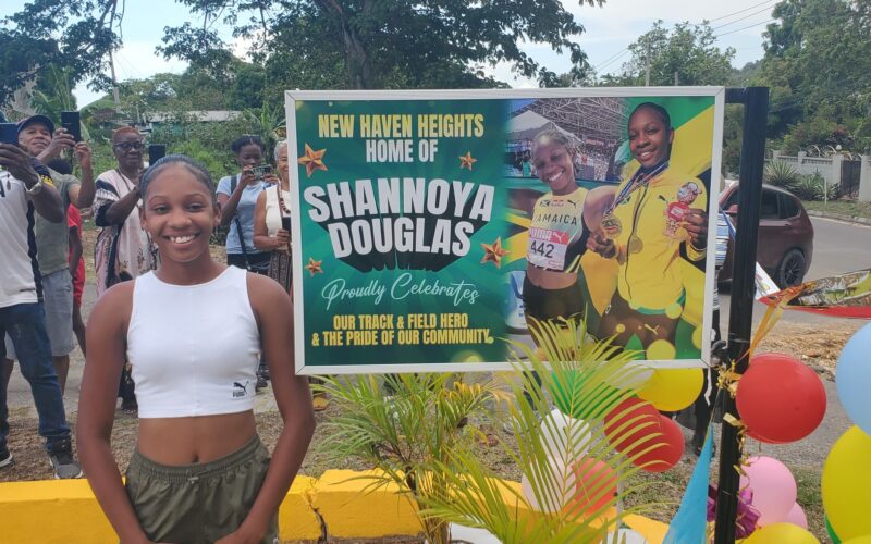 A new monument has been unveiled at the entrance of the New Haven Heights community in Granville, Trelawny, celebrating the outstanding achievements of rising track star Shanoya Douglas.