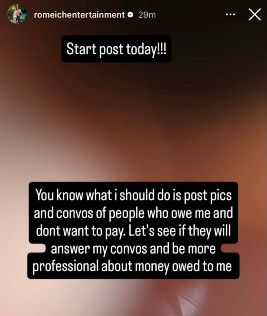 Romeich Major, CEO of Romeich Entertainment, is making headlines after posting on Instagram that he’s considering exposing people who owe him money.